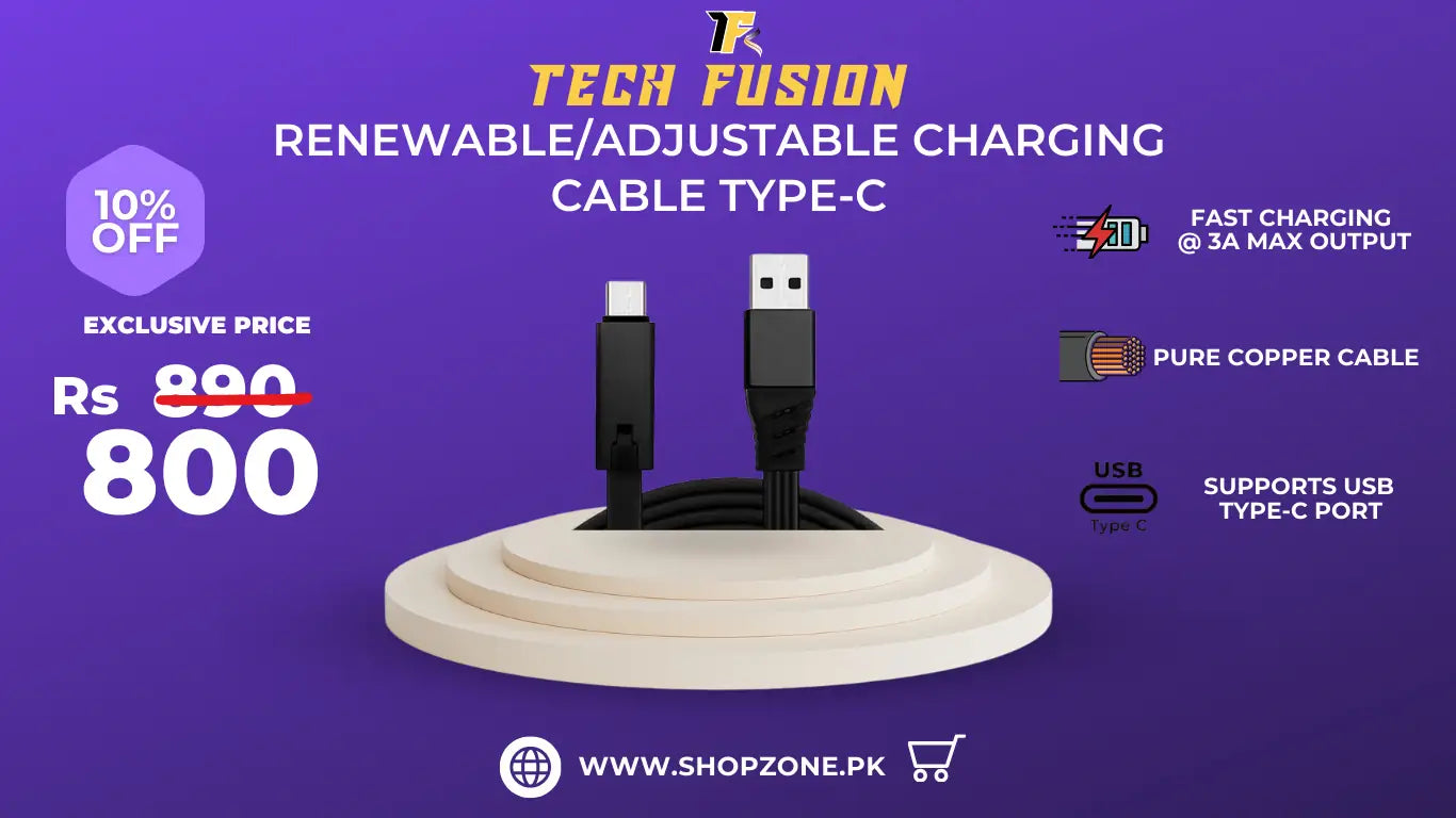 Renewable/Adjustable 1.5 m Fast Charging Cable For Type-C Compatible Devices